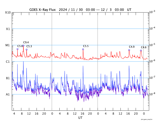 GOES衛星の太陽X線強度。赤・橙 = 0.1〜0.8 nm、青・紫 = 0.05〜0.4 nm (c) データ:NOAA/SWPC、作図:宇宙天気ニュース ![]() | |||||||||||||||||||||||||||||||||||||||||||||||||||||||||||||||||||||||||||||||||||||||||||||||||||||||||||||||||||||||||||||||||||||||||||||||||||||||||||||||||||||||||||||||||||||||||||||||||||||||||||||||||||||||||||||||||||||||||||||||||||||||||||||||||||||||||