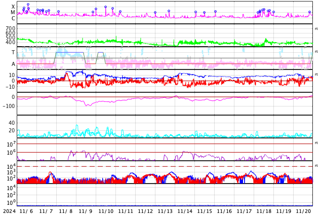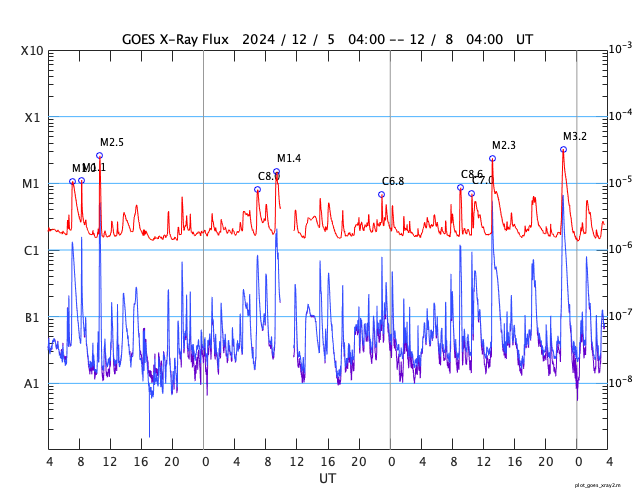 GOES衛星の太陽X線強度。赤・橙 = 0.1〜0.8 nm、青・紫 = 0.05〜0.4 nm (c) データ:NOAA/SWPC、作図:宇宙天気ニュース ![]() | |||||||||||||||||||||||||||||||||||||||||||||||||||||||||||||||||||||||||||||||||||||||||||||||||||||||||||||||||||||||||||||||||||||||||||||||||||||||||||||||||||||||||||||||||||||||||||||||||||||||||||||||||||||||||||||||||||||||||||||||||||||||||||||||||||||||||||||||||||||||||||||||||||||||||||||||||||||