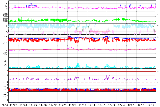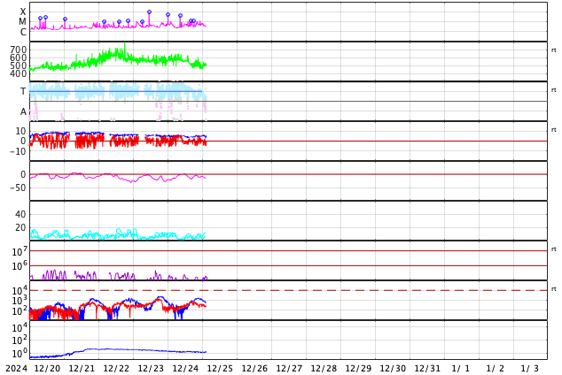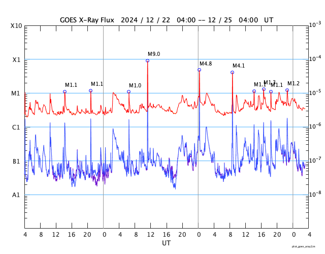 GOES衛星の太陽X線強度。赤・橙 = 0.1〜0.8 nm、青・紫 = 0.05〜0.4 nm (c) データ:NOAA/SWPC、作図:宇宙天気ニュース ![]() | |||||||||||||||||||||||||||||||||||||||||||||||||||||||||||||||||||||||||||||||||||||||||||||||||||||||||||||||||||||||||||||||||||||||||||||||||||||||||||||||||||||||||||||||||||||||||||||||||||||||||||||||||||||||||||||||||||||||||||||||||||||||||||||||||||||||||||||||||||||||||||||||||||||||||||||||||||||||||||||||||||||