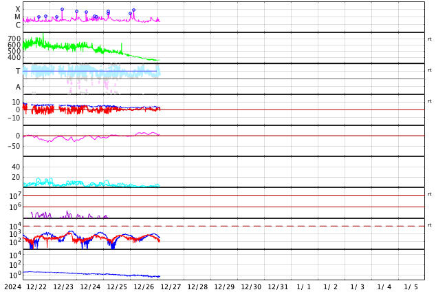 GOES衛星の太陽X線強度。赤・橙 = 0.1〜0.8 nm、青・紫 = 0.05〜0.4 nm (c) データ:NOAA/SWPC、作図:宇宙天気ニュース ![]() | |||||||||||||||||||||||||||||||||||||||||||||||||||||||||||||||||||||||||||||||||||||||||||||||||||||||||||||||||||||||||||||||||||||||||||||||||||||||||||||||||||||||||||||||||||||||||||||||||||||||||||||||||||||||||||||||||||||||||||||||||||||||||||||||||||||||||||||||||||||||||||||||||||||||||||||||||
