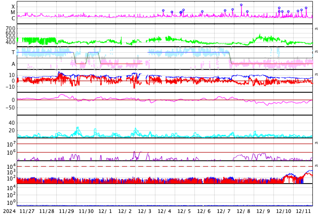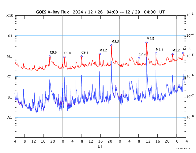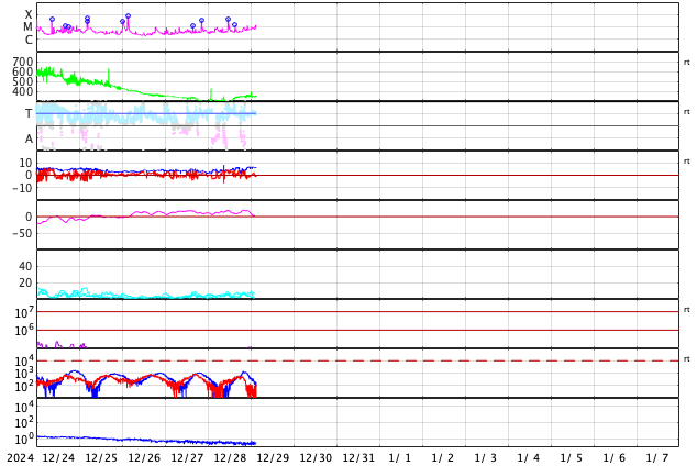 GOES衛星の太陽X線強度。赤・橙 = 0.1〜0.8 nm、青・紫 = 0.05〜0.4 nm (c) データ:NOAA/SWPC、作図:宇宙天気ニュース ![]() | ||||||||||||||||||||||||||||||||||||||||||||||||||||||||||||||||||||||||||||||||||||||||||||||||||||||||||||||||||||||||||||||||||||||||||||||||||||||||||||||||||||||||||||||||||||||||||||||||||||||||||||||||||||||||||||||||||||||||||||||||||||||||||||||||||||||||||||||||||||||||||||||||||||||||||||||||||||||||||||||||||