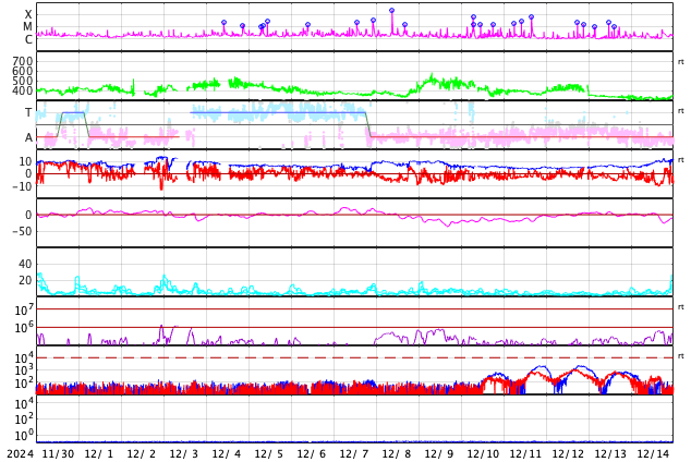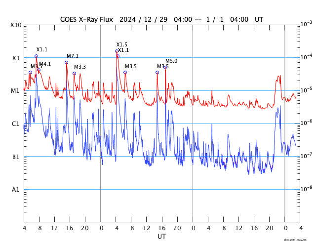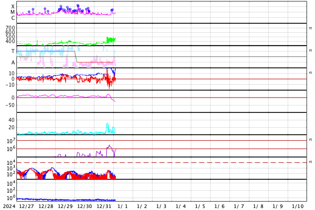 GOES衛星の太陽X線強度。赤・橙 = 0.1〜0.8 nm、青・紫 = 0.05〜0.4 nm (c) データ:NOAA/SWPC、作図:宇宙天気ニュース ![]() | ||||||||||||||||||||||||||||||||||||||||||||||||||||||||||||||||||||||||||||||||||||||||||||||||||||||||||||||||||||||||||||||||||||||||||||||||||||||||||||||||||||||||||||||||||||||||||||||||||||||||||||||||||||||||||||||||||||||||||||||||||||||||||||||||||||||||||||||||||||||||||||||||||||||||||||||||||||||||||||||||||||||||||||||||||||||||||||||||||||||||