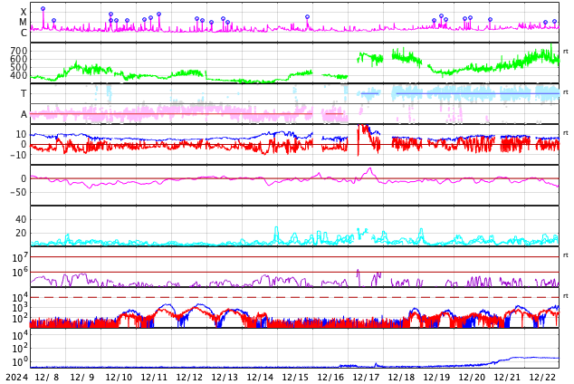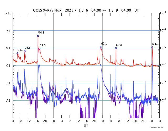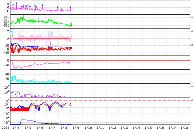GOES衛星の太陽X線強度。赤・橙 = 0.1〜0.8 nm、青・紫 = 0.05〜0.4 nm (c) データ:NOAA/SWPC、作図:宇宙天気ニュース ![]() | |||||||||||||||||||||||||||||||||||||||||||||||||||||||||||||||||||||||||||||||||||||||||||||||||||||||||||||||||||||||||||||||||||||||||||||||||||||||||||||||||||||||||||||||||||||||||||||||||||||||||||||||||||||||||||||||||||||||||||||||||||||||||||||||||||||||||||