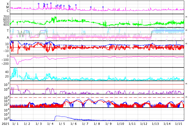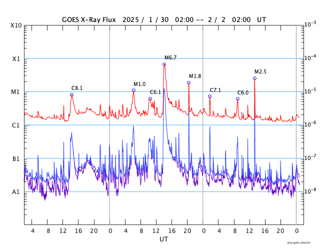 GOES衛星の太陽X線強度。赤・橙 = 0.1〜0.8 nm、青・紫 = 0.05〜0.4 nm (c) データ:NOAA/SWPC、作図:宇宙天気ニュース ![]() | |||||||||||||||||||||||||||||||||||||||||||||||||||||||||||||||||||||||||||||||||||||||||||||||||||||||||||||||||||||||||||||||||||||||||||||||||||||||||||||||||||||||||||||||||||||||||||||||||||||||||||||||||||||||||||||||||||||||||||||||||||||||||||||||||||||||||||||||||||||||||||||||||