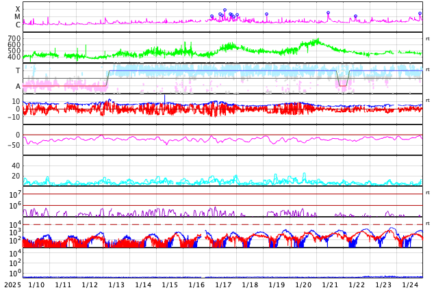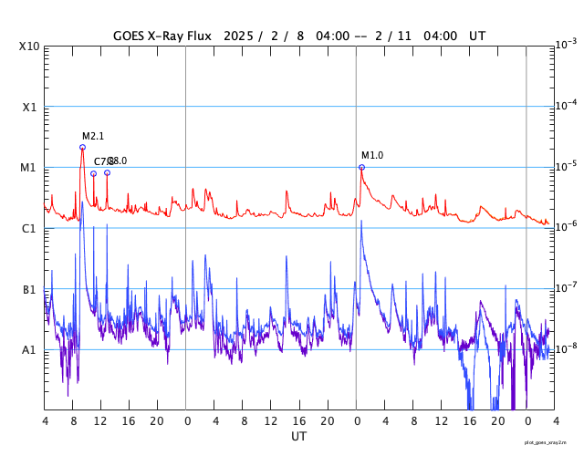 GOES衛星の太陽X線強度。赤・橙 = 0.1〜0.8 nm、青・紫 = 0.05〜0.4 nm (c) データ:NOAA/SWPC、作図:宇宙天気ニュース ![]() | |||||||||||||||||||||||||||||||||||||||||||||||||||||||||||||||||||||||||||||||||||||||||||||||||||||||||||||||||||||||||||||||||||||||||||||||||||||||||||||||||||||||||||||||||||||||||||||||||||||||||||||||||||||||||||||||||||||||||||||||||||||||||||||||||||||||||||||