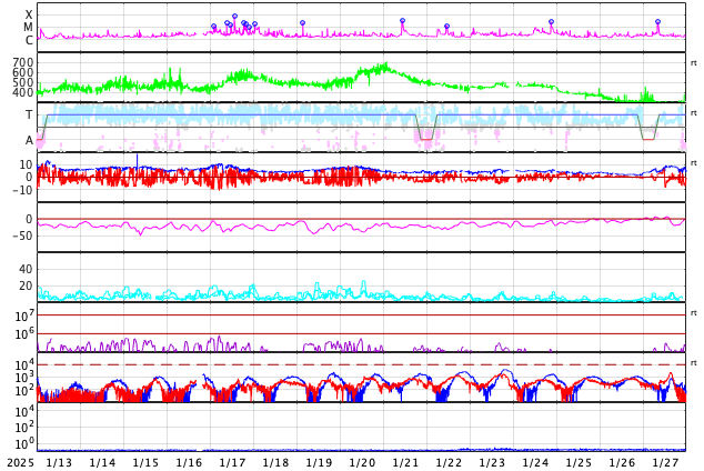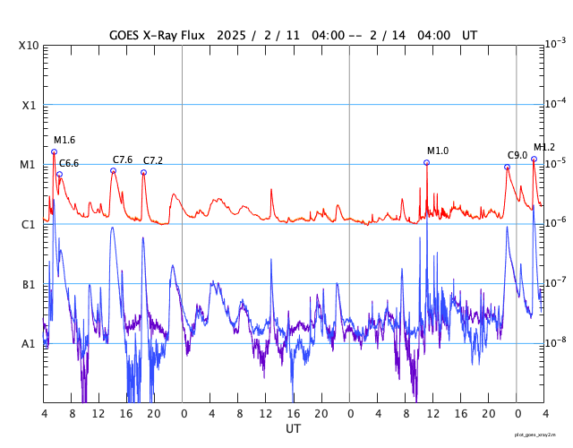GOES衛星の太陽X線強度。赤・橙 = 0.1〜0.8 nm、青・紫 = 0.05〜0.4 nm (c) データ:NOAA/SWPC、作図:宇宙天気ニュース ![]() | |||||||||||||||||||||||||||||||||||||||||||||||||||||||||||||||||||||||||||||||||||||||||||||||||||||||||||||||||||||||||||||||||||||||||||||||||||||||||||||||||||||||||||||||||||||||||||||||||||||||||||||||||||||||||||||||||||||||||||||||||||||||||||||||||||||