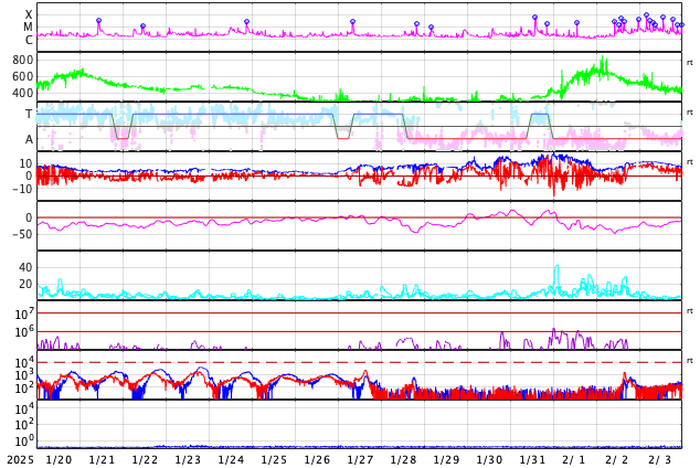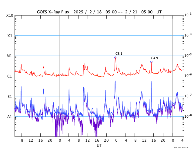 GOES衛星の太陽X線強度。赤・橙 = 0.1〜0.8 nm、青・紫 = 0.05〜0.4 nm (c) データ:NOAA/SWPC、作図:宇宙天気ニュース ![]() | |||||||||||||||||||||||||||||||||||||||||||||||||||||||||||||||||||||||||||||||||||||||||||||||||||||||||||||||||||||||||||||||||||||||||||||||||||||||||||||||||||||||||||||||||||||||||||||||||||||||||||||||||||||||||||||||||||||||||||||||||||||||||||