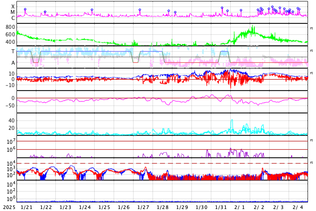 GOES衛星の太陽X線強度。赤・橙 = 0.1〜0.8 nm、青・紫 = 0.05〜0.4 nm (c) データ:NOAA/SWPC、作図:宇宙天気ニュース ![]() | |||||||||||||||||||||||||||||||||||||||||||||||||||||||||||||||||||||||||||||||||||||||||||||||||||||||||||||||||||||||||||||||||||||||||||||||||||||||||||||||||||||||||||||||||||||||||||||||||||||||||||||||||||||||||||||||||||||||||||||||||||||||||||||||||||||||||||||