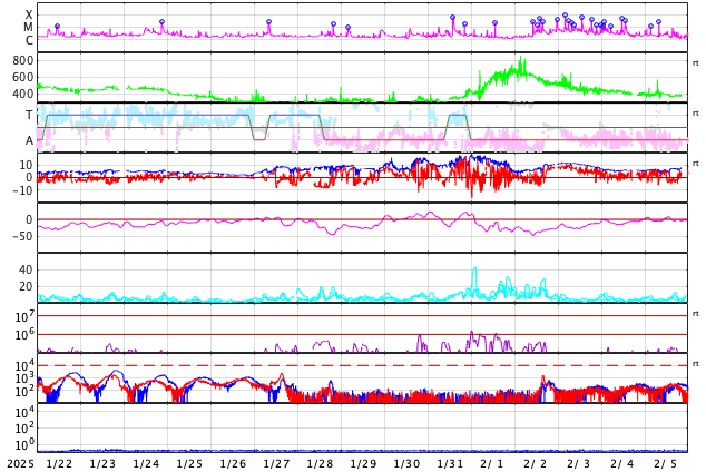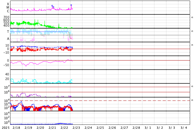 GOES衛星の太陽X線強度。赤・橙 = 0.1〜0.8 nm、青・紫 = 0.05〜0.4 nm (c) データ:NOAA/SWPC、作図:宇宙天気ニュース ![]() | |||||||||||||||||||||||||||||||||||||||||||||||||||||||||||||||||||||||||||||||||||||||||||||||||||||||||||||||||||||||||||||||||||||||||||||||||||||||||||||||||||||||||||||||||||||||||||||||||||||||||||||||||||||||||||||||||||||||||||||||||||||||||||||||||||||||||||||||||||||||||||||||||||||||||||||||||