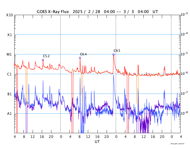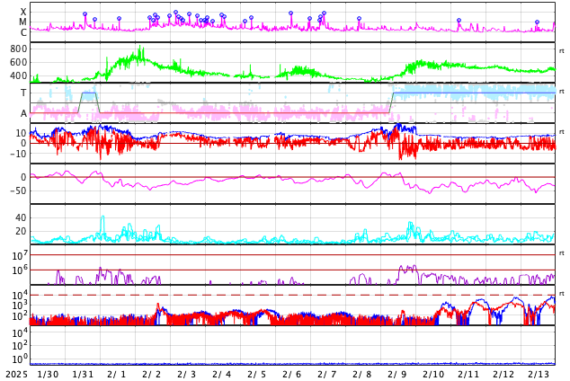 - 2025/ 2/26 12:36 M3.6の中規模フレアが発生しました。太陽風は低速になっています。