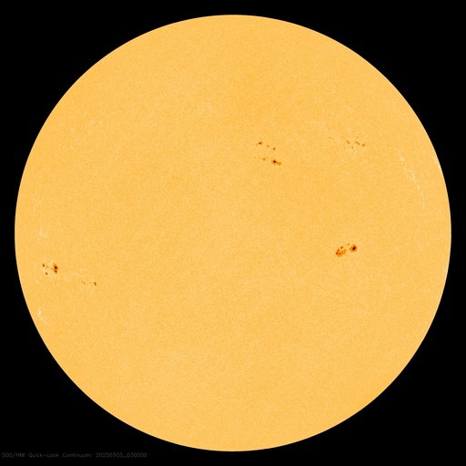 SDO衛星による太陽の可視光写真。マウスの矢印を写真に重ねると、黒点番号付きの写真に切り替わります。
