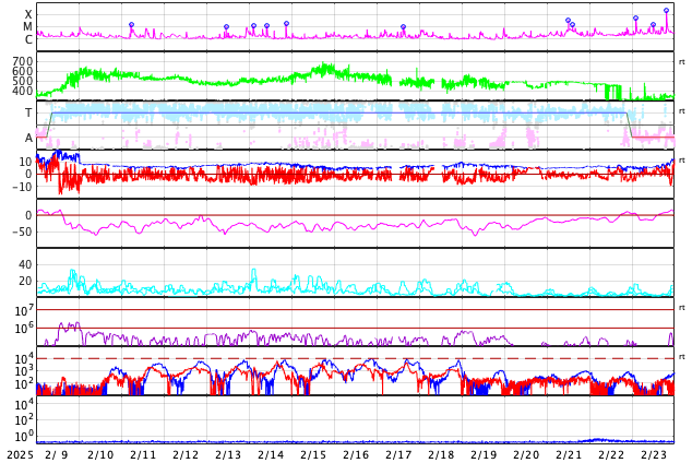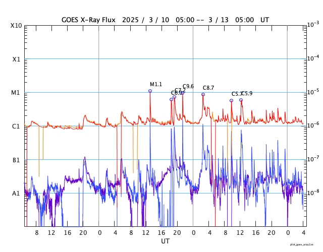GOES衛星の太陽X線強度。赤・橙 = 0.1〜0.8 nm、青・紫 = 0.05〜0.4 nm (c) データ:NOAA/SWPC、作図:宇宙天気ニュース ![]() | |||||||||||||||||||||||||||||||||||||||||||||||||||||||||||||||||||||||||||||||||||||||||||||||||||||||||||||||||||||||||||||||||||||||||||||||||||||||||||||||||||||||||||||||||||||||||||||||||||||||||||||||||||||||||||||||||||||||||||||||||||||||||||||||||||||||||||||||||||||||||||||||||||||||