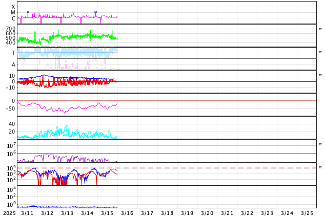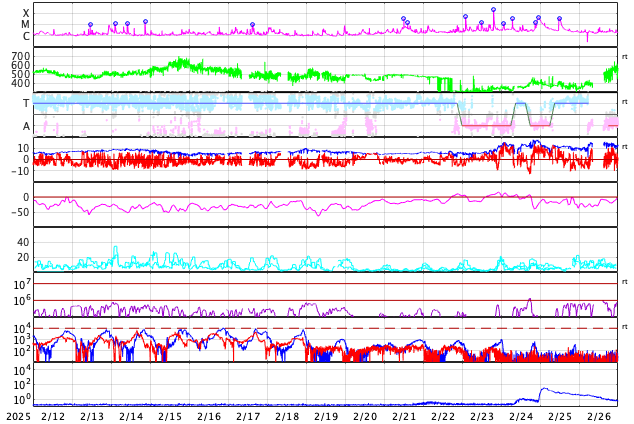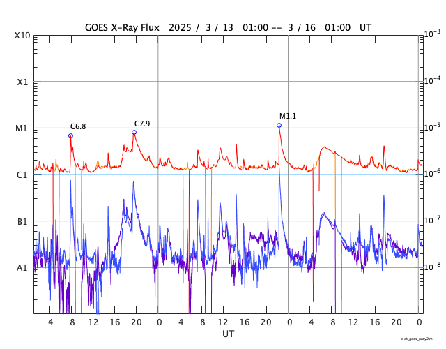 GOES衛星の太陽X線強度。赤・橙 = 0.1〜0.8 nm、青・紫 = 0.05〜0.4 nm (c) データ:NOAA/SWPC、作図:宇宙天気ニュース ![]() | |||||||||||||||||||||||||||||||||||||||||||||||||||||||||||||||||||||||||||||||||||||||||||||||||||||||||||||||||||||||||||||||||||||||||||||||||||||||||||||||||||||||||||||||||||||||||||||||||||||||||||||||||||||||||||||||||||||||||||||||||||||||||||||||||||||||||||||||||||