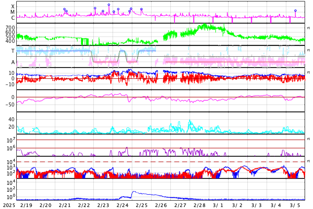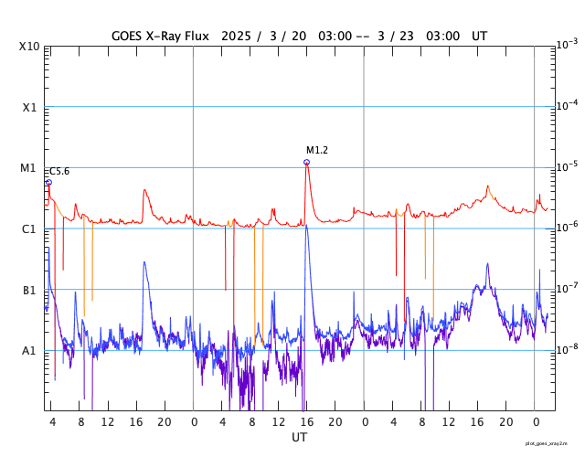 GOES衛星の太陽X線強度。赤・橙 = 0.1〜0.8 nm、青・紫 = 0.05〜0.4 nm (c) データ:NOAA/SWPC、作図:宇宙天気ニュース ![]() | |||||||||||||||||||||||||||||||||||||||||||||||||||||||||||||||||||||||||||||||||||||||||||||||||||||||||||||||||||||||||||||||||||||||||||||||||||||||||||||||||||||||||||||||||||||||||||||||||||||||||||||||||||||||||||||||||||||||||||||||||||||||||||||||||||||||||