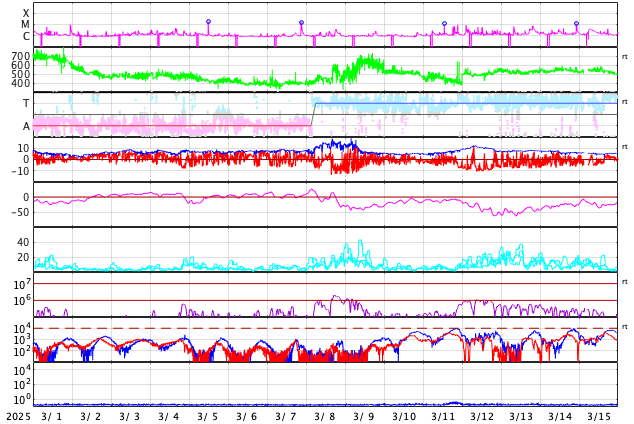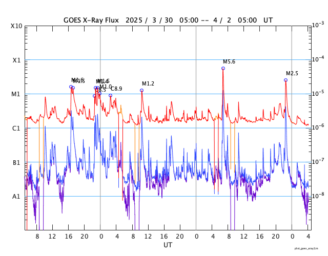 GOES衛星の太陽X線強度。赤・橙 = 0.1〜0.8 nm、青・紫 = 0.05〜0.4 nm (c) データ:NOAA/SWPC、作図:宇宙天気ニュース ![]() | ||||||||||||||||||||||||||||||||||||||||||||||||||||||||||||||||||||||||||||||||||||||||||||||||||||||||||||||||||||||||||||||||||||||||||||||||||||||||||||||||||||||||||||||||||||||||||||||||||||||||||||||||||||||||||||||||||||||||||||||||||||||||||||||||||||||||||||||||||||||||||||||||||||||||||||||||||||||||||||||||||||||||||||||||||||||||||