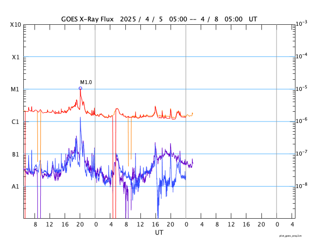 GOES衛星の太陽X線強度。赤・橙 = 0.1〜0.8 nm、青・紫 = 0.05〜0.4 nm (c) データ:NOAA/SWPC、作図:宇宙天気ニュース ![]() | ||||||||||||||||||||||||||||||||||||||||||||||||||||||||||||||||||||||||||||||||||||||||||||||||||||||||||||||||||||||||||||||||||||||||||||||||||||||||||||||||||||||||||||||||||||||||||||||||||||||||||||||||||||||||||||||||||||||||||||||||||||||