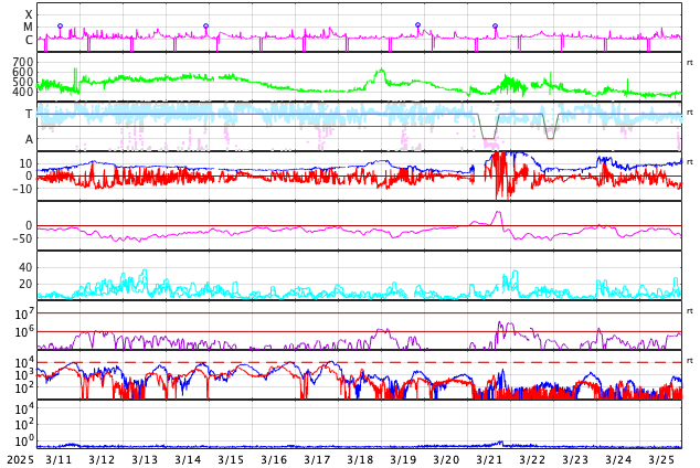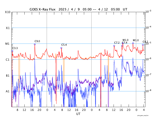 GOES衛星の太陽X線強度。赤・橙 = 0.1〜0.8 nm、青・紫 = 0.05〜0.4 nm (c) データ:NOAA/SWPC、作図:宇宙天気ニュース ![]() | ||||||||||||||||||||||||||||||||||||||||||||||||||||||||||||||||||||||||||||||||||||||||||||||||||||||||||||||||||||||||||||||||||||||||||||||||||||||||||||||||||||||||||||||||||||||||||||||||||||||||||||||||||||||||||||||||||||||||||||||||||||||||||||||||||||||||||||||||||||||||||||||||||