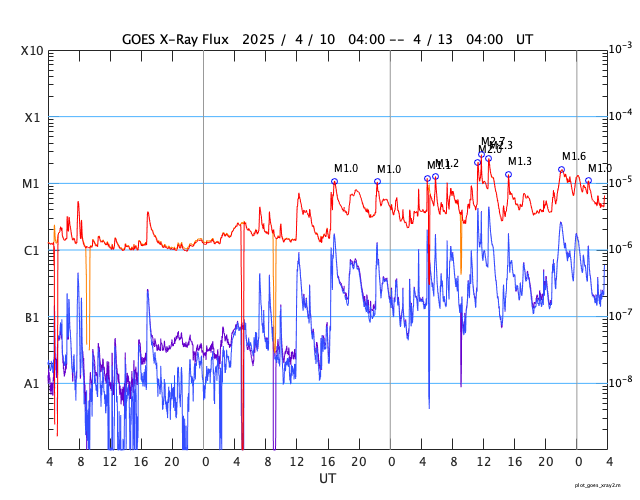 GOES衛星の太陽X線強度。赤・橙 = 0.1〜0.8 nm、青・紫 = 0.05〜0.4 nm (c) データ:NOAA/SWPC、作図:宇宙天気ニュース ![]() | |||||||||||||||||||||||||||||||||||||||||||||||||||||||||||||||||||||||||||||||||||||||||||||||||||||||||||||||||||||||||||||||||||||||||||||||||||||||||||||||||||||||||||||||||||||||||||||||||||||||||||||||||||||||||||||||||||||||||||||||||||||||||||||||||||||||||||||||||||||||||||||||||||||||||||||||||||||||||||||||||||||||