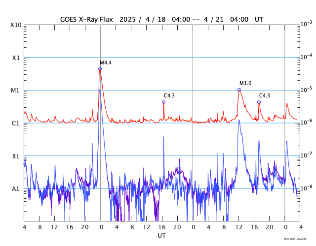 GOES衛星の太陽X線強度。赤・橙 = 0.1〜0.8 nm、青・紫 = 0.05〜0.4 nm (c) データ:NOAA/SWPC、作図:宇宙天気ニュース ![]() | |||||||||||||||||||||||||||||||||||||||||||||||||||||||||||||||||||||||||||||||||||||||||||||||||||||||||||||||||||||||||||||||||||||||||||||||||||||||||||||||||||||||||||||||||||||||||||||||||||||||||||||||||||||||||||||||||||||||||||||||||||||||