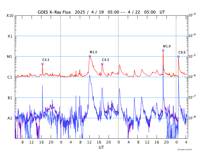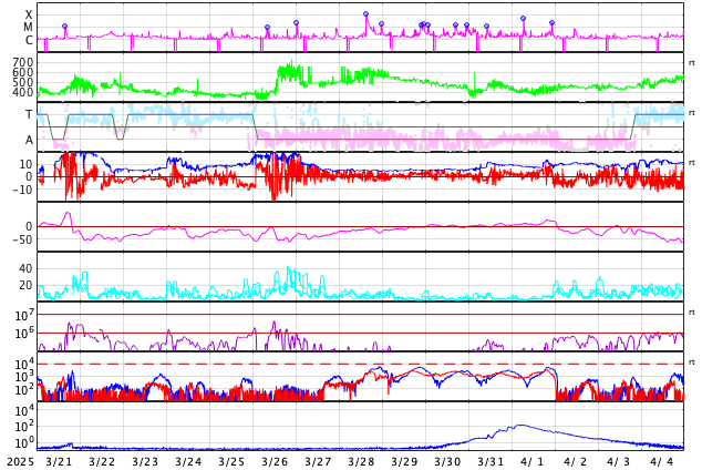 GOES衛星の太陽X線強度。赤・橙 = 0.1〜0.8 nm、青・紫 = 0.05〜0.4 nm (c) データ:NOAA/SWPC、作図:宇宙天気ニュース ![]() | |||||||||||||||||||||||||||||||||||||||||||||||||||||||||||||||||||||||||||||||||||||||||||||||||||||||||||||||||||||||||||||||||||||||||||||||||||||||||||||||||||||||||||||||||||||||||||||||||||||||||||||||||||||||||||||||||||||||||||||||||||||||||||