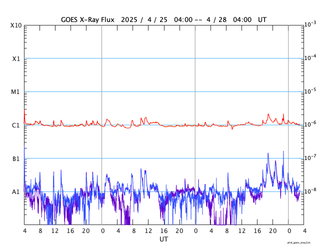 X線グラフは、C1〜2の小さいフレアが見られる程度です。