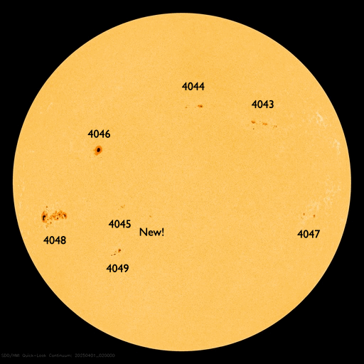 (c) 黒点データ:WDC-SILSO、作図:宇宙天気ニュース ![]() 4月の太陽黒点の推移。 (c) SDO衛星HMII (NASA)、(動画加工 : 宇宙天気ニュース) ![]() 1975年以降の太陽黒点相対数の長期変化。 (c) 黒点データ:WDC-SILSO、作図:宇宙天気ニュース ![]() 太陽の南側と北側で発生したフィラメント噴出。 (c) GOES衛星SUVI 304 (NOAA)、(動画加工 : 宇宙天気ニュース) ![]() SDO衛星のAIA193カメラによる太陽コロナの様子 (c) SDO (NASA) ![]() SDO衛星による太陽の可視光写真。マウスの矢印を写真に重ねると、黒点番号付きの写真に切り替わります。 (c) SDO (NASA) ![]() ACEが観測した太陽風の磁場(黒線は全体の強度、赤線は南北成分) 磁場の向き、プラズマの密度、速度、温度 (c) データ:NOAA/SWPC、作図:宇宙天気ニュース ![]() AE指数(速報値) 下段のAEグラフの値が高くなると、オーロラ活動が活発化しています。 (c) 京都大学WDC ![]() ![]() 27日の太陽周期に合わせた図 太陽が同じ面を地球に向けていた27日前の変化から、今後を予想することができます。 (c) 作図:宇宙天気ニュース