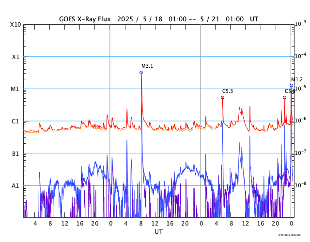 GOES衛星の太陽X線強度。赤・橙 = 0.1〜0.8 nm、青・紫 = 0.05〜0.4 nm (c) データ:NOAA/SWPC、作図:宇宙天気ニュース ![]() | |||||||||||||||||||||||||||||||||||||||||||||||||||||||||||||||||||||||||||||||||||||||||||||||||||||||||||||||||||||||||||||||||||||||||||||||||||||||||||||||||||||||||||||||||||||||||||||||||||||||||||||||||||||||||||||||||||||||||||||||