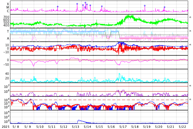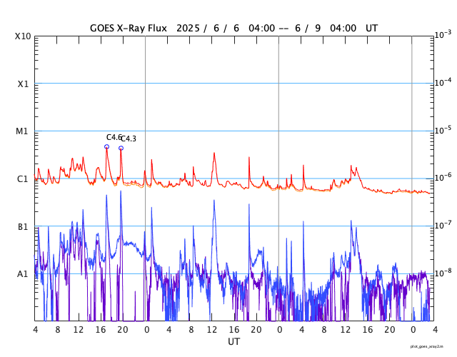 GOES衛星の太陽X線強度。赤・橙 = 0.1〜0.8 nm、青・紫 = 0.05〜0.4 nm (c) データ:NOAA/SWPC、作図:宇宙天気ニュース ![]() | |||||||||||||||||||||||||||||||||||||||||||||||||||||||||||||||||||||||||||||||||||||||||||||||||||||||||||||||||||||||||||||||||||||||||||||||||||||||||||||||||||||||||||||||||||||||||||||||||||||||||||||||||||||||||||||||||||||||||||||