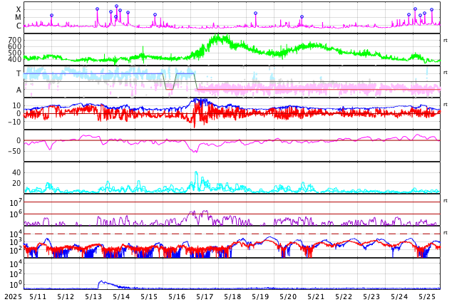 GOES衛星の太陽X線強度。赤・橙 = 0.1〜0.8 nm、青・紫 = 0.05〜0.4 nm (c) データ:NOAA/SWPC、作図:宇宙天気ニュース ![]() | |||||||||||||||||||||||||||||||||||||||||||||||||||||||||||||||||||||||||||||||||||||||||||||||||||||||||||||||||||||||||||||||||||||||||||||||||||||||||||||||||||||||||||||||||||||||||||||||||||||||||||||||||||||||||||||||||||||||||||||||||||||||||||||||||||||||||||