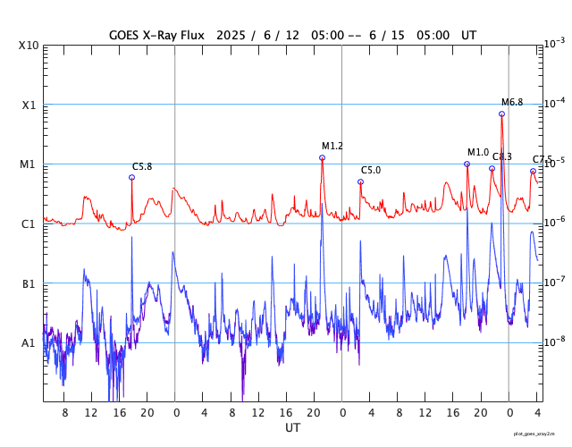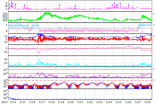 GOES衛星の太陽X線強度。赤・橙 = 0.1〜0.8 nm、青・紫 = 0.05〜0.4 nm (c) データ:NOAA/SWPC、作図:宇宙天気ニュース ![]() | ||||||||||||||||||||||||||||||||||||||||||||||||||||||||||||||||||||||||||||||||||||||||||||||||||||||||||||||||||||||||||||||||||||||||||||||||||||||||||||||||||||||||||||||||||||||||||||||||||||||||||||||||||||||||||||||||||||||||||||||||||||||||||||||||||||||||||||||||||||||