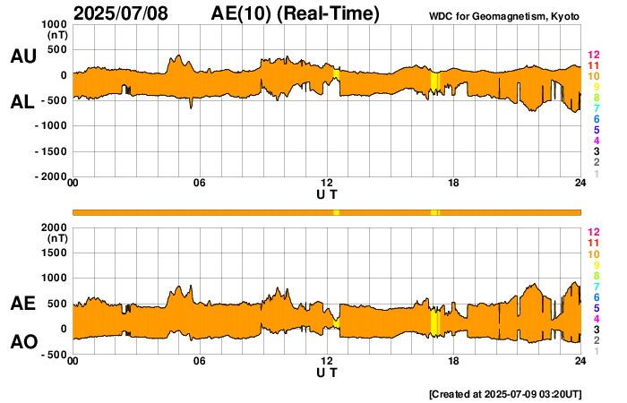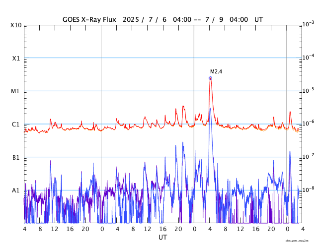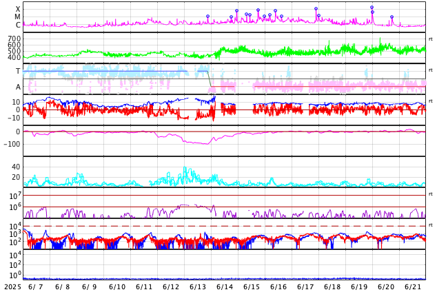 GOES衛星の太陽X線強度。赤・橙 = 0.1〜0.8 nm、青・紫 = 0.05〜0.4 nm (c) データ:NOAA/SWPC、作図:宇宙天気ニュース ![]() | ||||||||||||||||||||||||||||||||||||||||||||||||||||||||||||||||||||||||||||||||||||||||||||||||||||||||||||||||||||||||||||||||||||||||||||||||||||||||||||||||||||||||||||||||||||||||||||||||||||||||||||||||||||||||||||||||||||||||||||