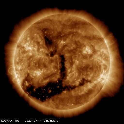 - 2025/ 7/ 9 12:28 高速の太陽風が続いています。太陽は穏やかな状態です。