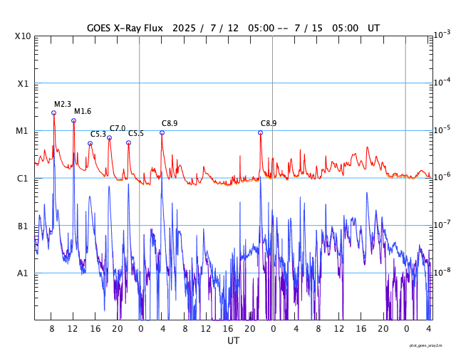 GOES衛星の太陽X線強度。赤・橙 = 0.1〜0.8 nm、青・紫 = 0.05〜0.4 nm (c) データ:NOAA/SWPC、作図:宇宙天気ニュース ![]() | |||||||||||||||||||||||||||||||||||||||||||||||||||||||||||||||||||||||||||||||||||||||||||||||||||||||||||||||||||||||||||||||||||||||||||||||||||||||||||||||||||||||||||||||||||||||||||||||||||||||||||||||||||||||||||||||||||||||||||||||||||||||||||||||||||||||||||||||||||||||