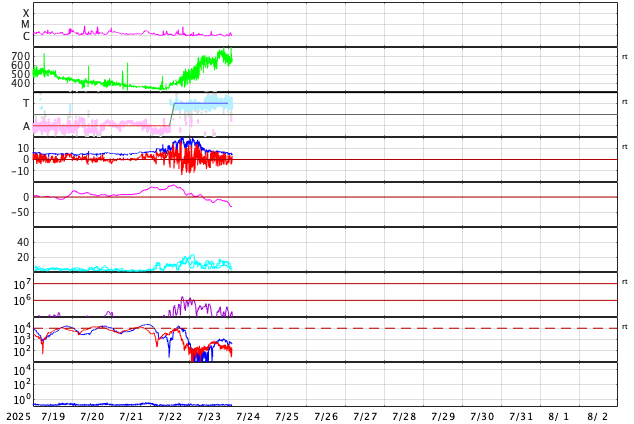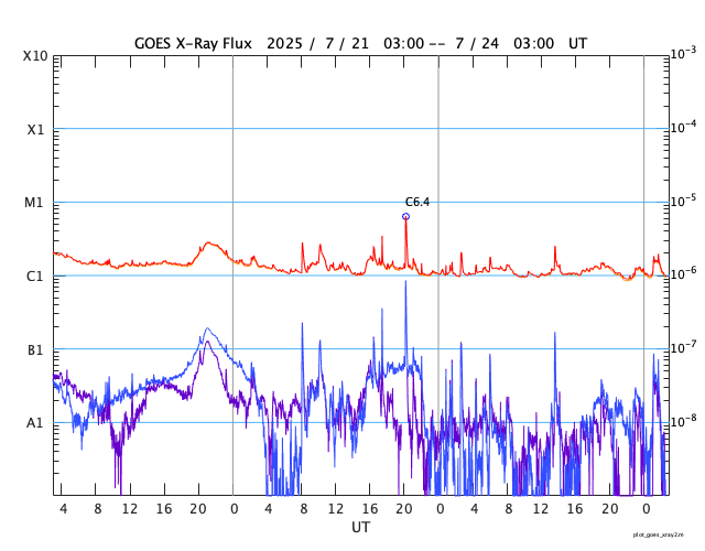 GOES衛星の太陽X線強度。赤・橙 = 0.1〜0.8 nm、青・紫 = 0.05〜0.4 nm (c) データ:NOAA/SWPC、作図:宇宙天気ニュース ![]() | ||||||||||||||||||||||||||||||||||||||||||||||||||||||||||||||||||||||||||||||||||||||||||||||||||||||||||||||||||||||||||||||||||||||||||||||||||||||||||||||||||||||||||||||||||||||||||||||||||||||||||||||||||||||||||||||||||||||||||||||