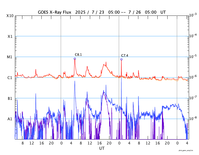 GOES衛星の太陽X線強度。赤・橙 = 0.1〜0.8 nm、青・紫 = 0.05〜0.4 nm (c) データ:NOAA/SWPC、作図:宇宙天気ニュース ![]() | ||||||||||||||||||||||||||||||||||||||||||||||||||||||||||||||||||||||||||||||||||||||||||||||||||||||||||||||||||||||||||||||||||||||||||||||||||||||||||||||||||||||||||||||||||||||||||||||||||||||||||||||||||||||||||||||||||||||||||||||||||||||||