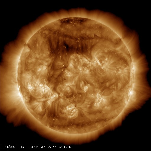 - 2025/ 7/25 12:38 高速の太陽風が続いていますが、速度はゆっくり低下しています。