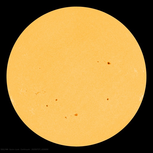 SDO衛星による太陽の可視光写真。マウスの矢印を写真に重ねると、黒点番号付きの写真に切り替わります。