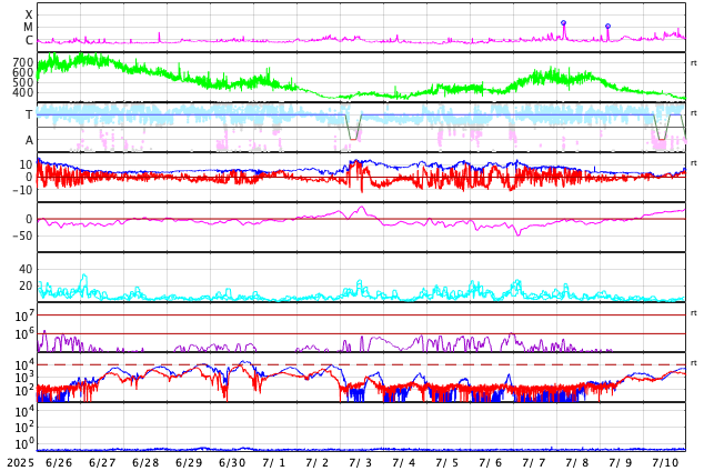 GOES衛星の太陽X線強度。赤・橙 = 0.1〜0.8 nm、青・紫 = 0.05〜0.4 nm (c) データ:NOAA/SWPC、作図:宇宙天気ニュース ![]() | |||||||||||||||||||||||||||||||||||||||||||||||||||||||||||||||||||||||||||||||||||||||||||||||||||||||||||||||||||||||||||||||||||||||||||||||||||||||||||||||||||||||||||||||||||||||||||||||||||||||||||||||||||||||||||||||||||||||||||||||||