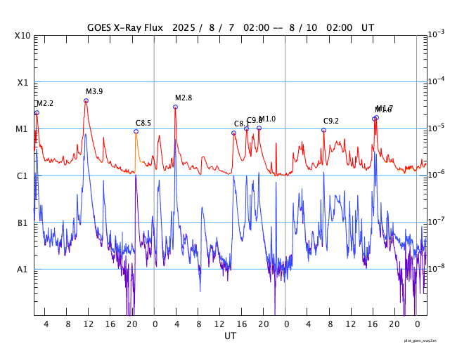 GOES衛星の太陽X線強度。赤・橙 = 0.1〜0.8 nm、青・紫 = 0.05〜0.4 nm (c) データ:NOAA/SWPC、作図:宇宙天気ニュース ![]() | |||||||||||||||||||||||||||||||||||||||||||||||||||||||||||||||||||||||||||||||||||||||||||||||||||||||||||||||||||||||||||||||||||||||||||||||||||||||||||||||||||||||||||||||||||||||||||||||||||||||||||||||||||||||||||||||||||||||||||||||||||||||||||||||||||||||||||||||||||||||||||||||||||||||||||||||||||
