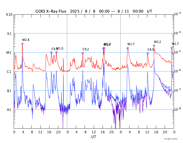 GOES衛星の太陽X線強度。赤・橙 = 0.1〜0.8 nm、青・紫 = 0.05〜0.4 nm (c) データ:NOAA/SWPC、作図:宇宙天気ニュース ![]() | |||||||||||||||||||||||||||||||||||||||||||||||||||||||||||||||||||||||||||||||||||||||||||||||||||||||||||||||||||||||||||||||||||||||||||||||||||||||||||||||||||||||||||||||||||||||||||||||||||||||||||||||||||||||||||||||||||||||||||||||||||||||||||||||||||||||||||||||||||||||||||||||||||||||||||||||||||