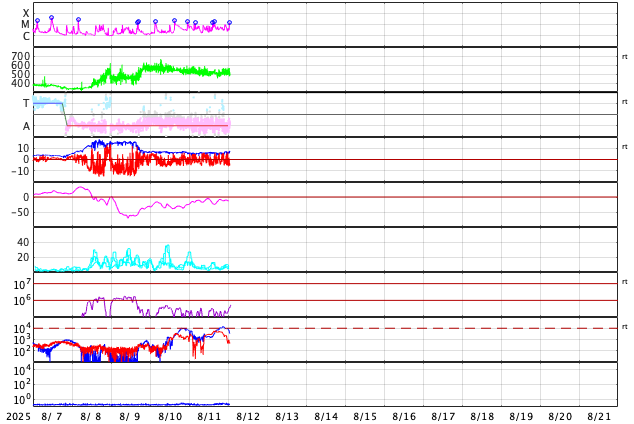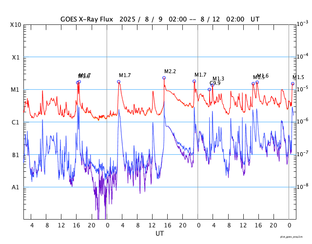 GOES衛星の太陽X線強度。赤・橙 = 0.1〜0.8 nm、青・紫 = 0.05〜0.4 nm (c) データ:NOAA/SWPC、作図:宇宙天気ニュース ![]() | |||||||||||||||||||||||||||||||||||||||||||||||||||||||||||||||||||||||||||||||||||||||||||||||||||||||||||||||||||||||||||||||||||||||||||||||||||||||||||||||||||||||||||||||||||||||||||||||||||||||||||||||||||||||||||||||||||||||||||||||||||||||||||||||||||||||||||||||||||||||||||||||||||||||||||||||||||||||||||||||||||||||