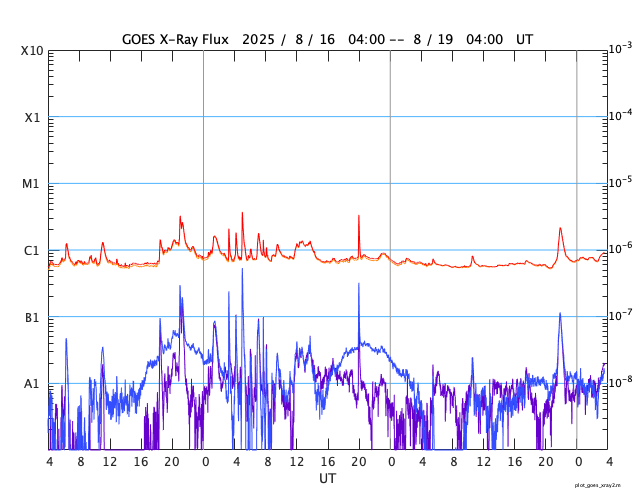 GOES衛星の太陽X線強度。赤・橙 = 0.1〜0.8 nm、青・紫 = 0.05〜0.4 nm (c) データ:NOAA/SWPC、作図:宇宙天気ニュース ![]() | |||||||||||||||||||||||||||||||||||||||||||||||||||||||||||||||||||||||||||||||||||||||||||||||||||||||||||||||||||||||||||||||||||||||||||||||||||||||||||||||||||||||||||||||||||||||||||||||||||||||||||||||||||||||||||||||||||||||||||||