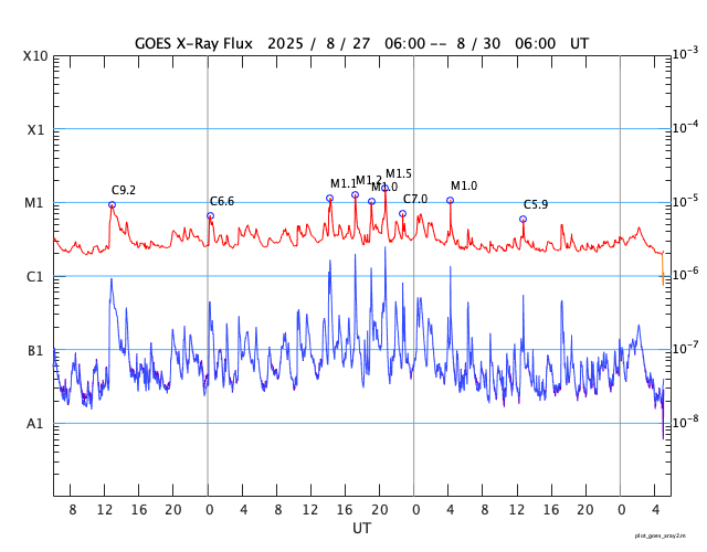 GOES衛星の太陽X線強度。赤・橙 = 0.1〜0.8 nm、青・紫 = 0.05〜0.4 nm (c) データ:NOAA/SWPC、作図:宇宙天気ニュース ![]() | |||||||||||||||||||||||||||||||||||||||||||||||||||||||||||||||||||||||||||||||||||||||||||||||||||||||||||||||||||||||||||||||||||||||||||||||||||||||||||||||||||||||||||||||||||||||||||||||||||||||||||||||||||||||||||||||||||||||||||||||||||||||||||||||||||||||||||||||||||||||||||||||||||||||||