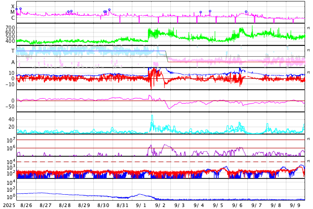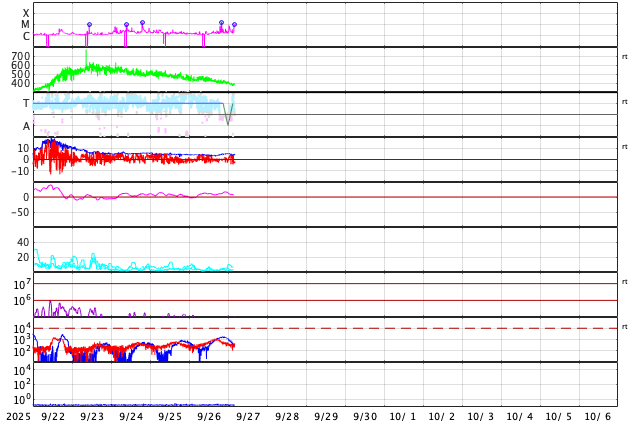 GOES衛星の太陽X線強度。赤・橙 = 0.1〜0.8 nm、青・紫 = 0.05〜0.4 nm (c) データ:NOAA/SWPC、作図:宇宙天気ニュース ![]() | |||||||||||||||||||||||||||||||||||||||||||||||||||||||||||||||||||||||||||||||||||||||||||||||||||||||||||||||||||||||||||||||||||||||||||||||||||||||||||||||||||||||||||||||||||||||||||||||||||||||||||||||||||||||||||||||||||||||||||||||||||||||||||||||||||||||||||||||||||||||||||||
