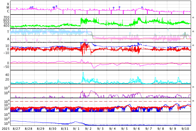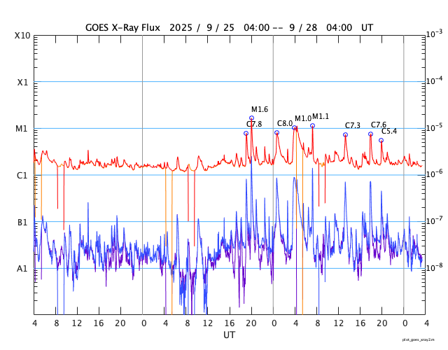 GOES衛星の太陽X線強度。赤・橙 = 0.1〜0.8 nm、青・紫 = 0.05〜0.4 nm (c) データ:NOAA/SWPC、作図:宇宙天気ニュース ![]() | |||||||||||||||||||||||||||||||||||||||||||||||||||||||||||||||||||||||||||||||||||||||||||||||||||||||||||||||||||||||||||||||||||||||||||||||||||||||||||||||||||||||||||||||||||||||||||||||||||||||||||||||||||||||||||||||||||||||||||||||||||||||||||||||||||||||||||||||||||||||||||||||||||||||||||||||||||||