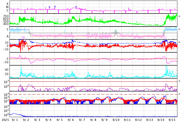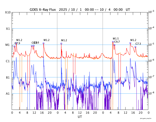 GOES衛星の太陽X線強度。赤・橙 = 0.1〜0.8 nm、青・紫 = 0.05〜0.4 nm (c) データ:NOAA/SWPC、作図:宇宙天気ニュース ![]() | |||||||||||||||||||||||||||||||||||||||||||||||||||||||||||||||||||||||||||||||||||||||||||||||||||||||||||||||||||||||||||||||||||||||||||||||||||||||||||||||||||||||||||||||||||||||||||||||||||||||||||||||||||||||||||||||||||||||||||||||||||||||||||||||||||||||||||||||||||||
