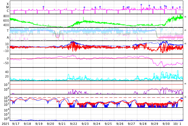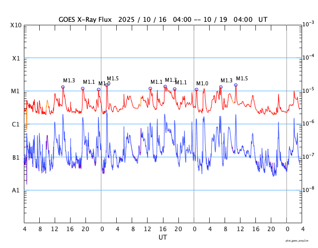GOES衛星の太陽X線強度。赤・橙 = 0.1〜0.8 nm、青・紫 = 0.05〜0.4 nm (c) データ:NOAA/SWPC、作図:宇宙天気ニュース ![]() | |||||||||||||||||||||||||||||||||||||||||||||||||||||||||||||||||||||||||||||||||||||||||||||||||||||||||||||||||||||||||||||||||||||||||||||||||||||||||||||||||||||||||||||||||||||||||||||||||||||||||||||||||||||||||||||||||||||||||||||||||||||||||||||||||||||||||||||||||||||||||||||||||||||||||||||||||||||||||||||||||||