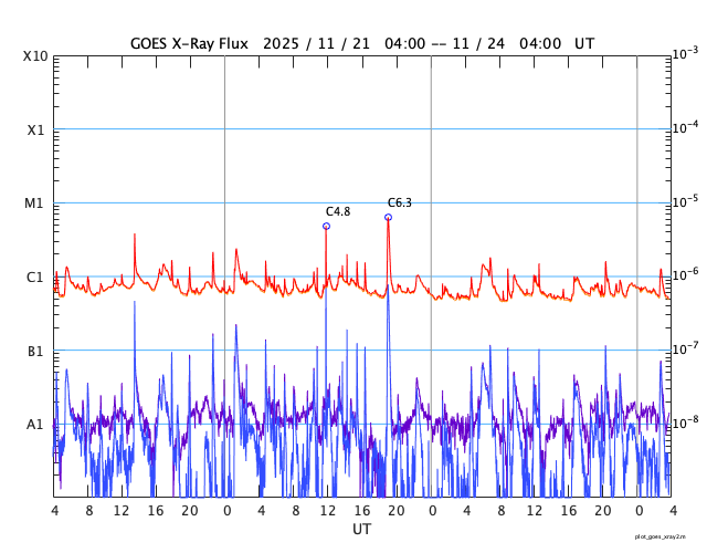 GOES衛星の太陽X線強度。赤・橙 = 0.1〜0.8 nm、青・紫 = 0.05〜0.4 nm (c) データ:NOAA/SWPC、作図:宇宙天気ニュース ![]() | |||||||||||||||||||||||||||||||||||||||||||||||||||||||||||||||||||||||||||||||||||||||||||||||||||||||||||||||||||||||||||||||||||||||||||||||||||||||||||||||||||||||||||||||||||||||||||||||||||||||||||||||||||||||||||||||||||||||||||