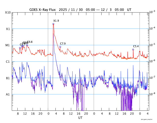 GOES衛星の太陽X線強度。赤・橙 = 0.1〜0.8 nm、青・紫 = 0.05〜0.4 nm (c) データ:NOAA/SWPC、作図:宇宙天気ニュース ![]() | ||||||||||||||||||||||||||||||||||||||||||||||||||||||||||||||||||||||||||||||||||||||||||||||||||||||||||||||||||||||||||||||||||||||||||||||||||||||||||||||||||||||||||||||||||||||||||||||||||||||||||||||||||||||||||||||||||||||||||||||||||||||||||||||||||||||||||||||||||||||||||||