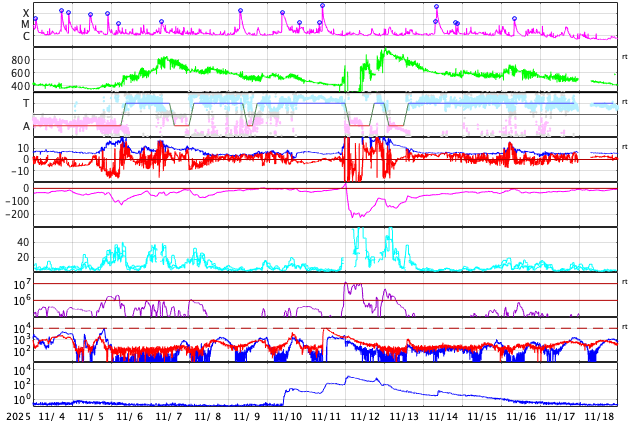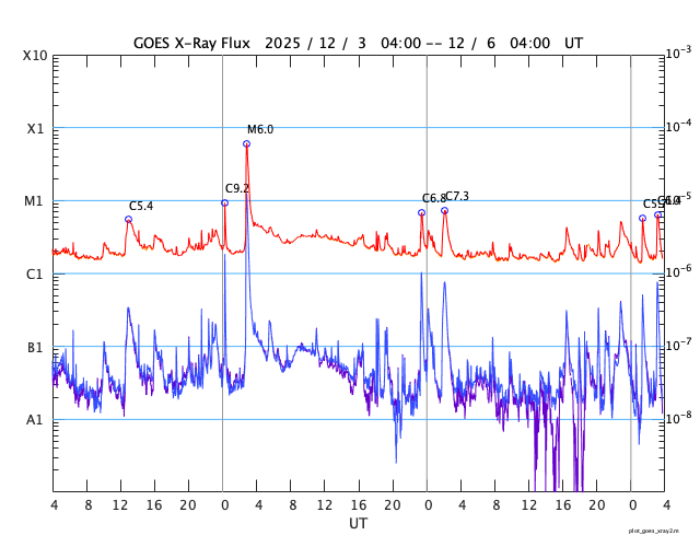 GOES衛星の太陽X線強度。赤・橙 = 0.1〜0.8 nm、青・紫 = 0.05〜0.4 nm (c) データ:NOAA/SWPC、作図:宇宙天気ニュース ![]() | |||||||||||||||||||||||||||||||||||||||||||||||||||||||||||||||||||||||||||||||||||||||||||||||||||||||||||||||||||||||||||||||||||||||||||||||||||||||||||||||||||||||||||||||||||||||||||||||||||||||||||||||||||||||||||||||||||||||||||||||||||||||||||||||||||||||||